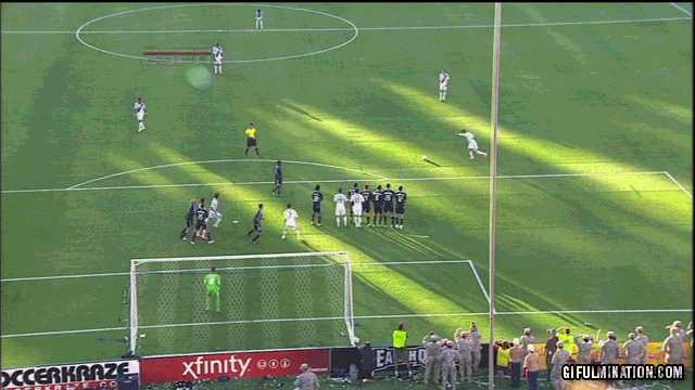 David Beckham was able to draw things level on a Galaxy free kick just outside the box. Chavez fouled Mike Magee just outside the penalty area. The ref drew the ten foot line giving David Beckham plenty of space to go for the near corner. The ball went over the wall and bent in with David Bingham unable to move.