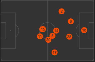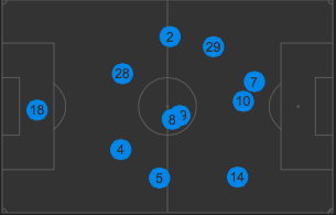 The key to answering this question is in looking at the average positions for both teams last Sunday and the battles which ensued. Here are the average positions for LA which came out in their usual 4-4-2 as a control.