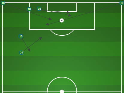 Donovan's performance was notable enough to make Matt Doyle's Three Things from the weekend, and as you can see in the Opta chart four of the key passes were from the run of play. Donovan ran freely between a third forward role and a distributing midfielder role. With defenders having to so much attention to Keane while acknowledging Samuel, Donovan found himself with the ball in space with some frequency. That also led to moments like this: