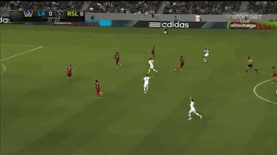 Robbie Keane and Samuel each are able to occupy two defenders, so when Donovan starts his run out wide Tony Beltran is caught between a rock and a hard place. If he goes to mark Donovan, Keane has a one on one in front of goal. Donovan's too fast for making up ground and Keane's too good a passer, so once Beltran made his choice Donovan was going to have the ball in the penalty area. It took a world class save from MLS Player of the Week Nick Rimando to keep the ball out of the net.