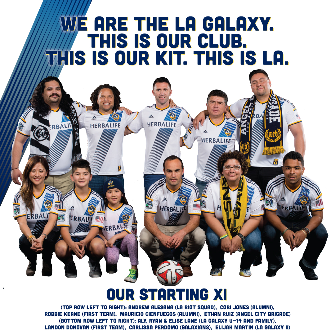 Since the kit is nothing new to those of us at the Confidential, let's talk about picture instead. You've got current players in Landon Donovan and Robbie Keane, alumni in Cobi Jones and Mauricio Cienfuegos, representatives from the LA Riot Squad, Angel City Brigade, and Galaxians, academy player and family, plus a former academy player turned LA Galaxy II signing in Elijah Martin.