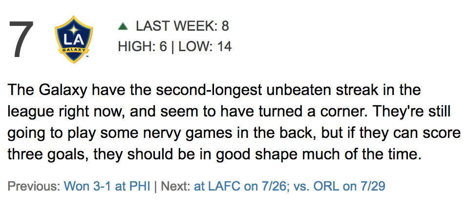 The Galaxy are rolling. Winners of three straight and now unbeaten in seven league matches, LA have jumped another spot in this week’s Power Rankings.