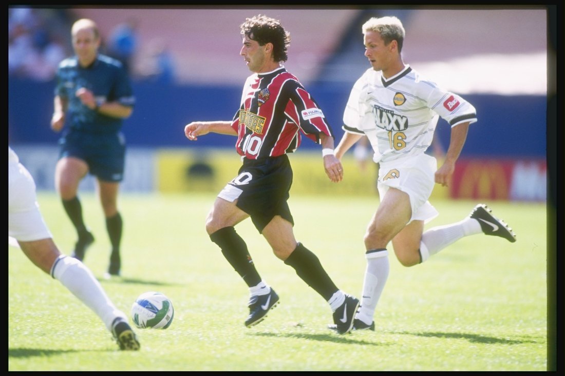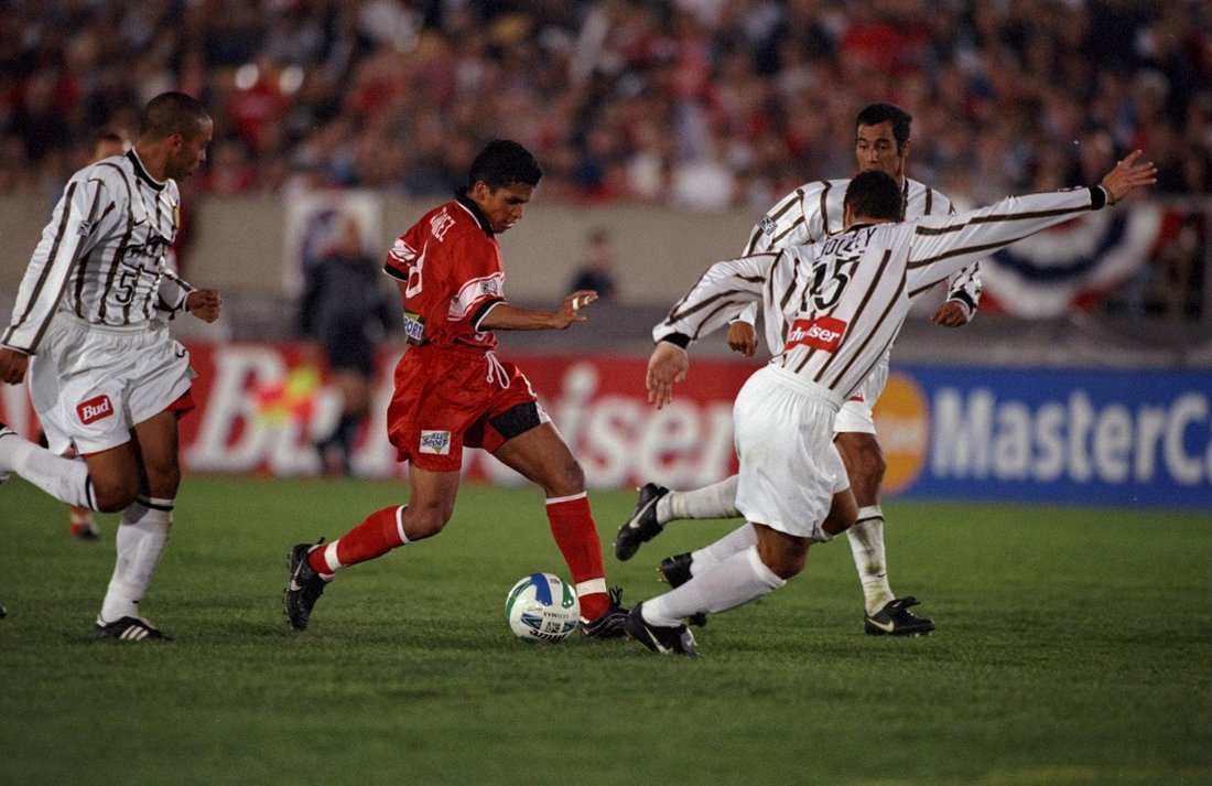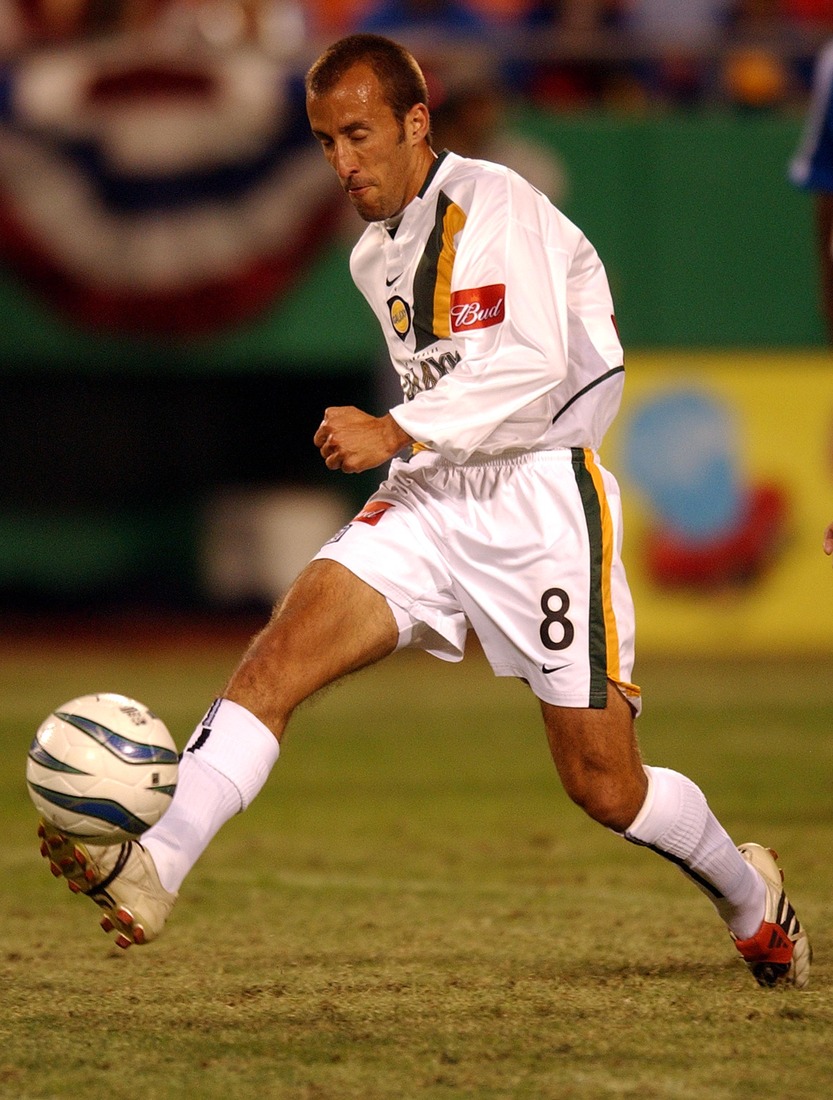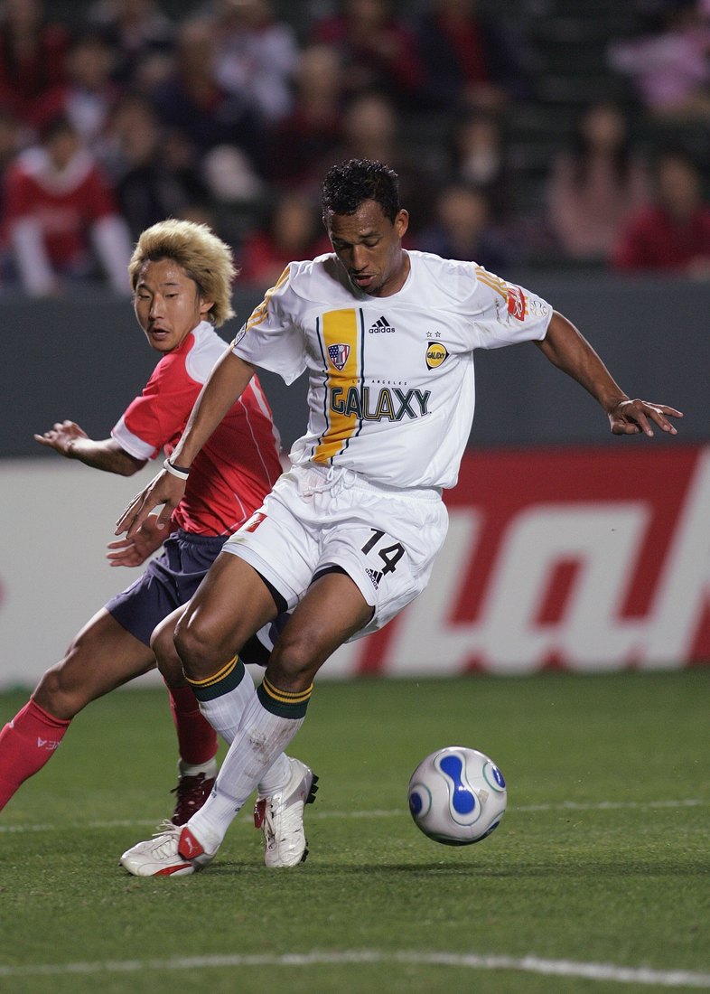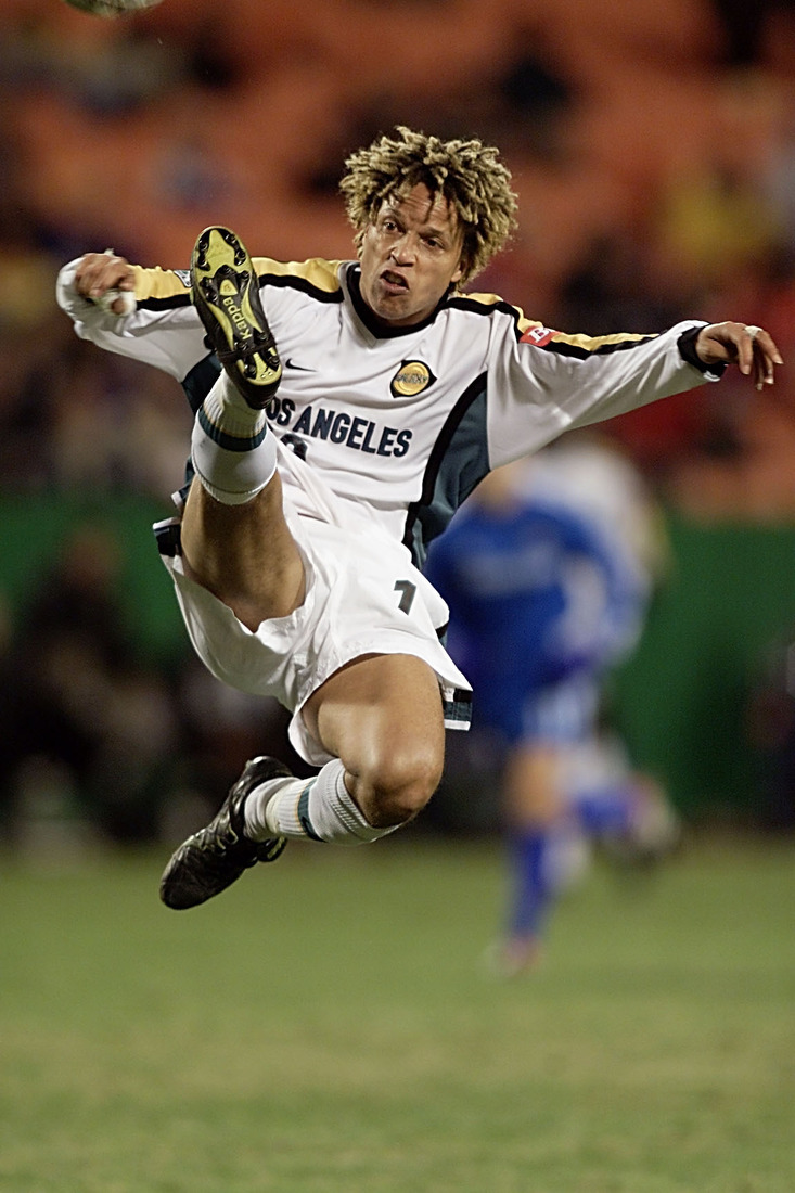 The Galaxy called the Rose Bowl home, which means the return of teal. Kobi Jones is getting his kung-fu on, wearing teal down the side and gold across the shoulders.